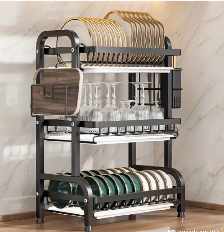 - ✅ Estructura de acero inoxidable resistente: Material anticorrosión y de alta durabilidad, diseñado para soportar el peso de vajillas y utensilios sin deformarse.
