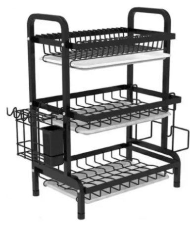 - ✅ Diseño multifuncional de 3 niveles: Permite organizar platos, tazas, cubiertos, especias y utensilios en un solo lugar, optimizando el espacio de la cocina.
